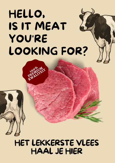 voor een slagerij: Hello, is it meat you’re looking for...(denk aan de hit van Lionel Richie)