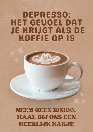 Dat zijn posters met ludieke en grappige spreuken die iets te maken hebben met je bedrijf of je product. Emo-posters werken goed, omdat je passanten daarmee een glimlach bezorgt. Leuke leuzen roepen een positieve emotie op die wordt gekoppeld aan je bedrijf. In een tijd waarin winkelbeleving zo ongeveer tot kunst is verheven is dat een niet te onderschatten positief effect. Je winkel is opeens ‘een goed gevoel'.